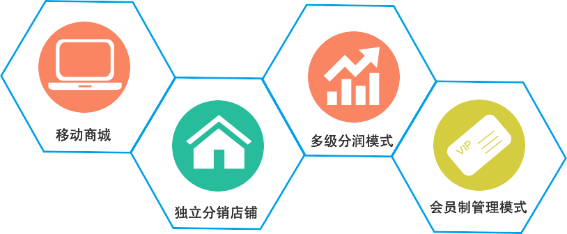 集“移動商城+獨立分銷店鋪+多級分潤模式/會員制管理模式 幫助企業搭建移動分銷平臺,基于社交分享幫助產品銷售、渠道管理、品牌推廣